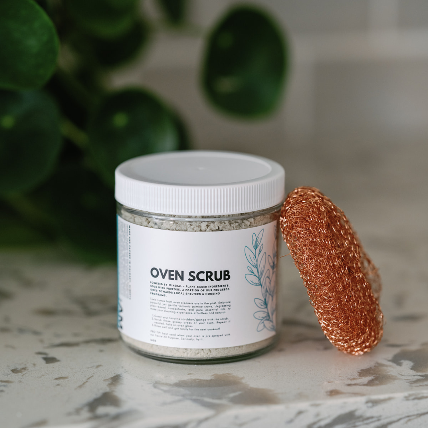 2. Cover your favorite scrubber/sponge with the scrub. P.S. The complimentary copper scrubber is included for maximum effect (while supplies last).